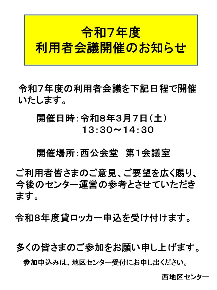 利用者会議開催のお知らせ(令和8年度ロッカー貸出について)
